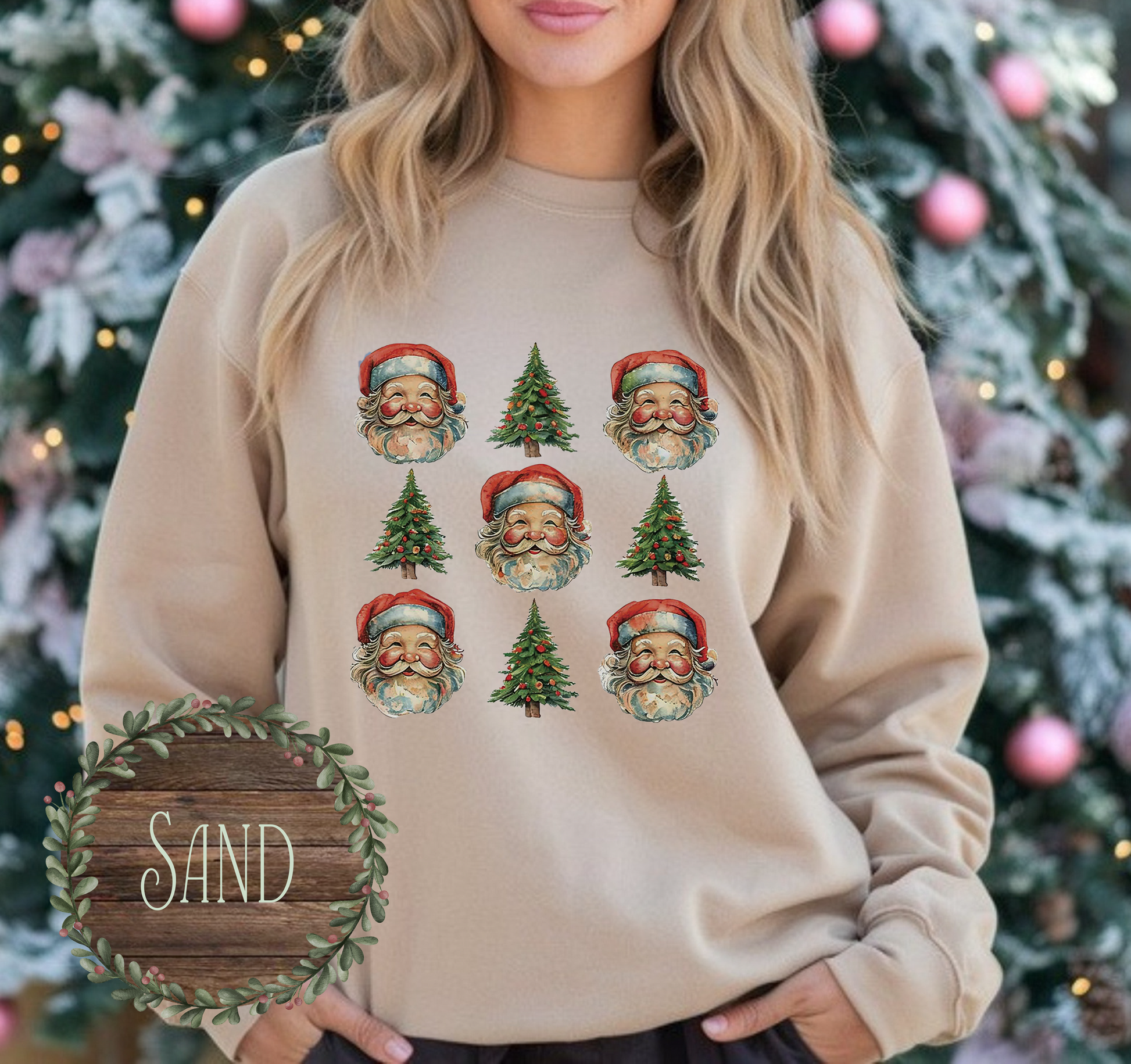 Introducing a cozy and stylish Unisex Heavy Blendâ„¢ Crewneck Sweatshirt, perfect for the festive season! This sweatshirt features a delightful pattern of old-fashioned Santa faces and Christmas trees, bringing a playful and cheerful vibe to your winter wardrobe. Ideal for holiday gatherings, cozy evenings by the fire, or as a thoughtful gift for loved ones. With its classic fit and soft fabric, it offers comfort for everyone, making it a must-have for holiday celebrations, Christmas parties, or simply lounging at home. Designed for anyone who embraces the holiday spirit, this sweatshirt will surely make every occasion more joyful!
