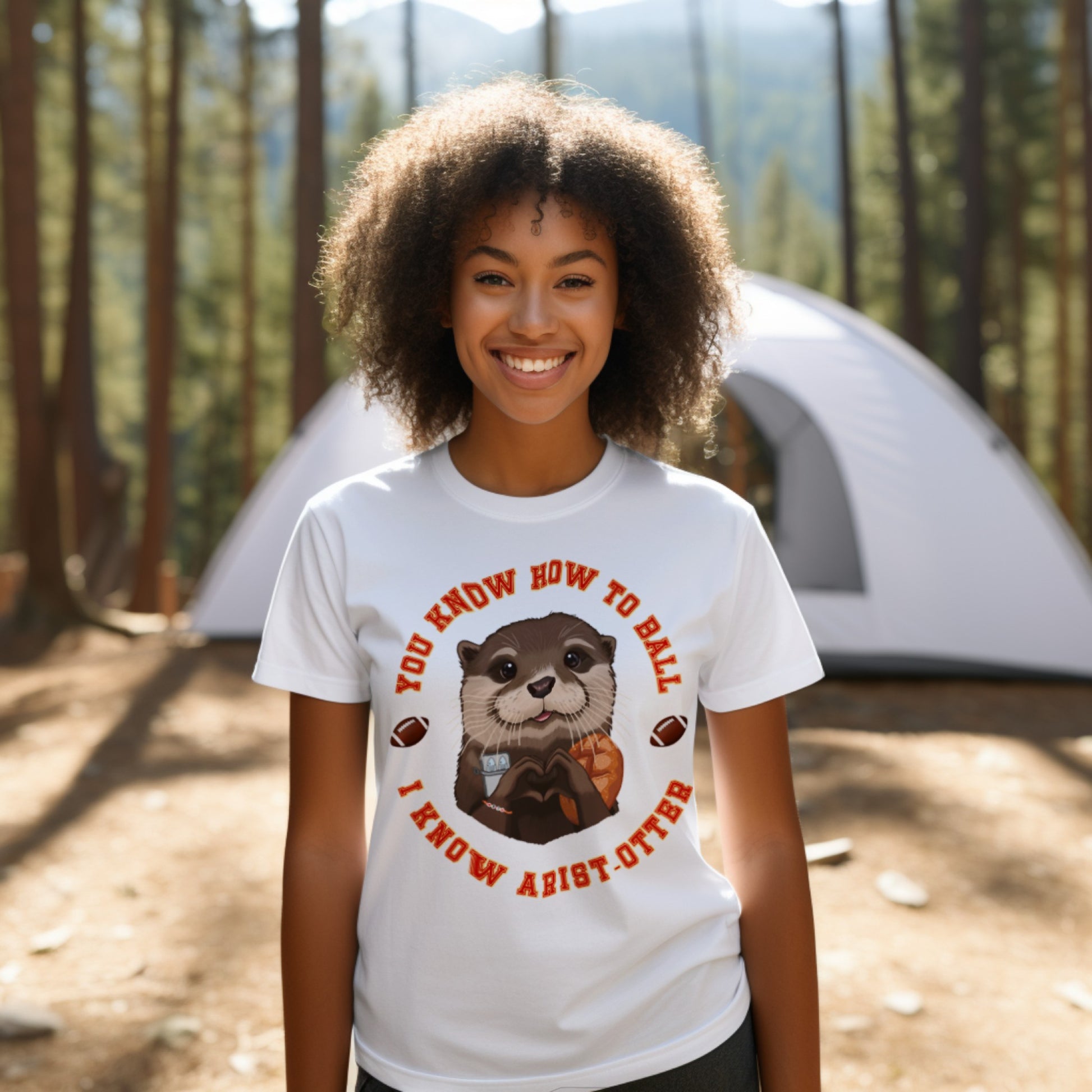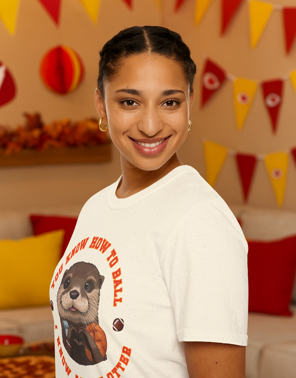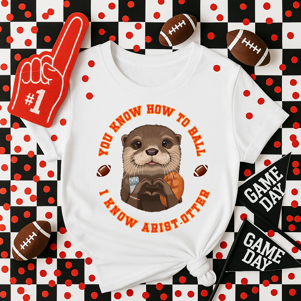 This T-Shirt is inspired by Taylor and Travis and the NH podcast. It features the otter he always wanted to rescue and incorporates sourdough and sardines as potential food for the otter. It also features Chiefs colors and a friendship bracelet for Chiefs fans and Swifties alike with a So High School otter pun description! The design gives off a fun and whimsical vibe, perfect for fans of the podcast looking to showcase their love the show, Taylor, Travis, and Chief football. It's great for football games and lounging at home.